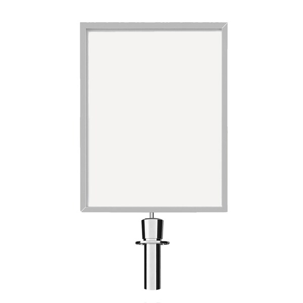 These convenient sign frames fit on top of any standard classic post and rope stanchion, allowing your existing stanchions to serve a double purpose as floor signs and increase your in-store messaging without taking up extra floor space. The attractive frame comes in a variety of sizes, finishes, and orientations to match your existing stanchion. Use these for directional or promotional messaging to avoid customer confusion, increase sales, or improve the foot traffic within your store or small business.