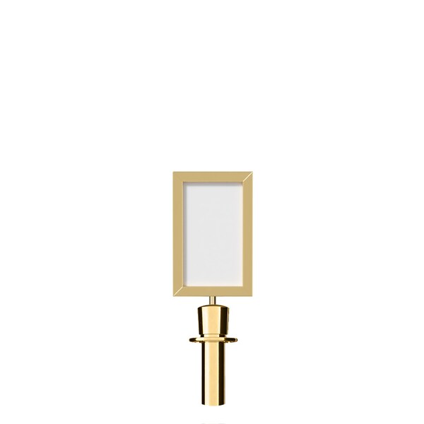 These convenient sign frames fit on top of any standard classic post and rope stanchion, allowing your existing stanchions to serve a double purpose as floor signs and increase your in-store messaging without taking up extra floor space. The attractive frame comes in a variety of sizes, finishes, and orientations to match your existing stanchion. Use these for directional or promotional messaging to avoid customer confusion, increase sales, or improve the foot traffic within your store or small business.