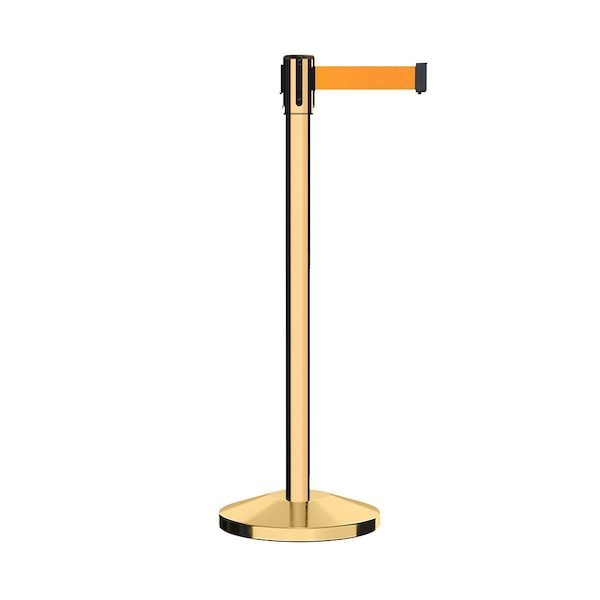 Retractable Belt Barrier Stanchion, 2" Pol.Brass Post 9' Fl.Org Belt (Discontinued)