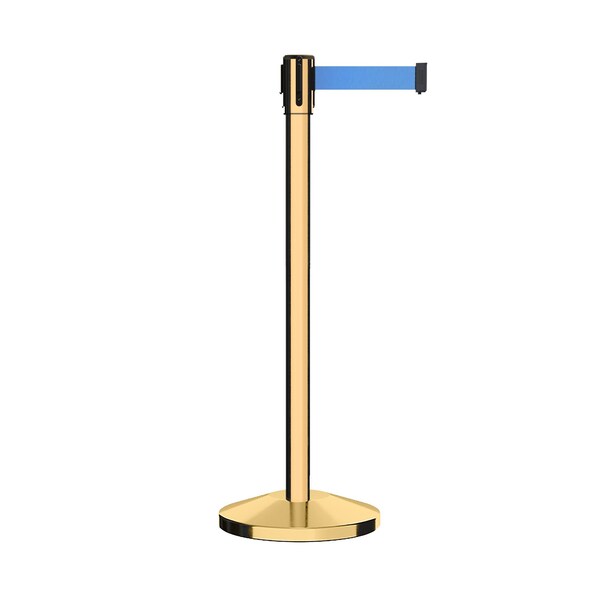 Retractable Belt Barrier Stanchion, 2" Pol.Brass Post 9' Lt Blu Belt (Discontinued)