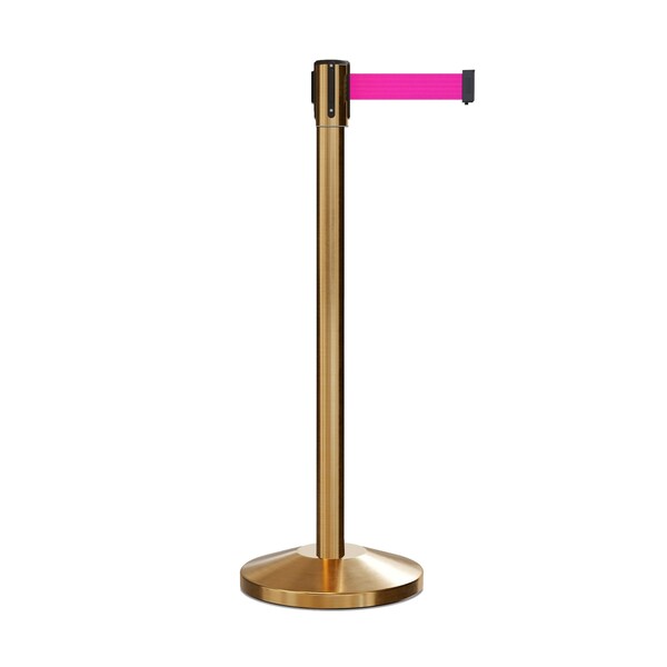 Retractable Belt Barrier Stanchion, 2" Sat.Brass Post 11' Fl.Pnk Belt (Discontinued)