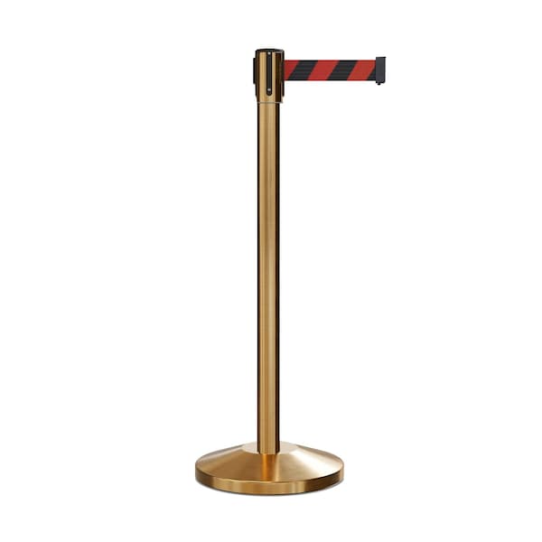 Retractable Belt Barrier Stanchion, 2" Sat.Brass Post 7.5'Blk/Rd Belt (Discontinued)