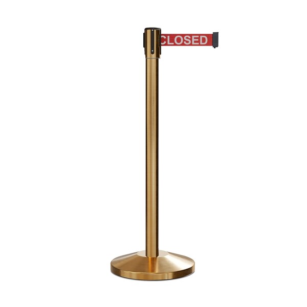 Retractable Belt Barrier Stanchion, 2" Sat.Brass Post 7.5'Close..Belt (Discontinued)