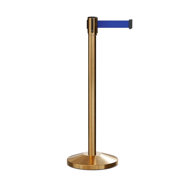 Retractable Belt Barrier Stanchion, 2" Sat.Brass Post 7.5'Dk Blu Belt (Discontinued)