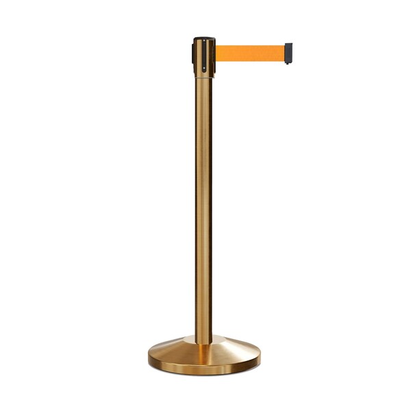 Retractable Belt Barrier Stanchion, 2" Sat.Brass Post 7.5'Fl.Org Belt (Discontinued)