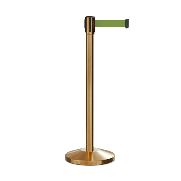 Retractable Belt Barrier Stanchion, 2" Sat.Brass Post 9' Olive Belt (Discontinued)