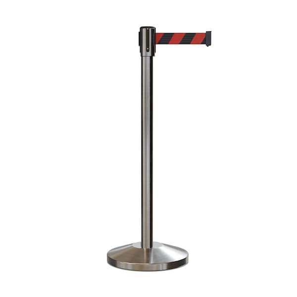 Retractable Belt Barrier Stanchion, 2" Sat.Steel Post 7.5'Blk/Rd Belt (Discontinued)