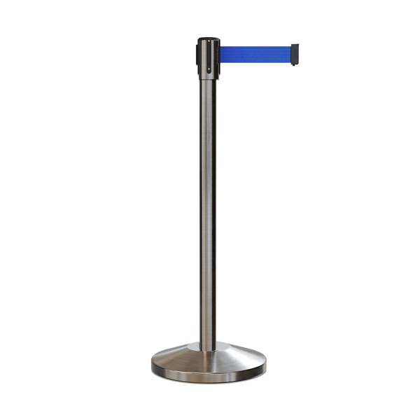 Retractable Belt Barrier Stanchion, 2" Sat.Steel Post 7.5'Blue Belt (Discontinued)