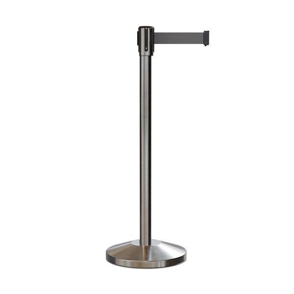 Retractable Belt Barrier Stanchion, 2" Sat.Steel Post 7.5'Dk Gry Belt (Discontinued)