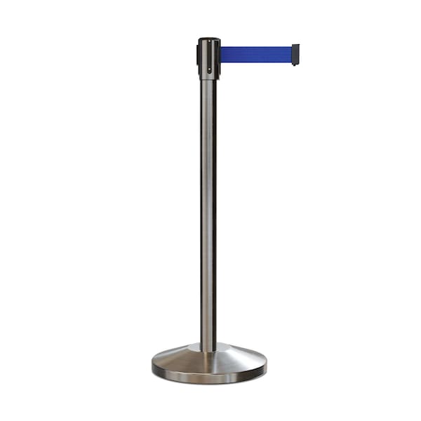 Retractable Belt Barrier Stanchion, 2" Sat.Steel Post 9' Dk Blu Belt (Discontinued)