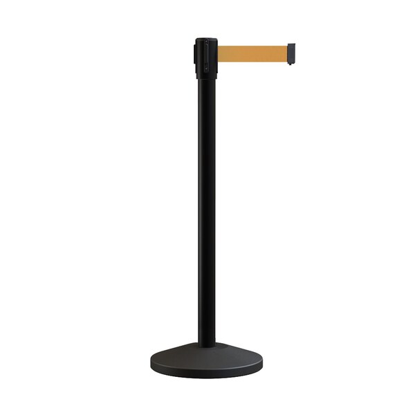 Retractable Belt Barrier Stanchion, 2in Black Post 7.5'Brown Belt (Discontinued)