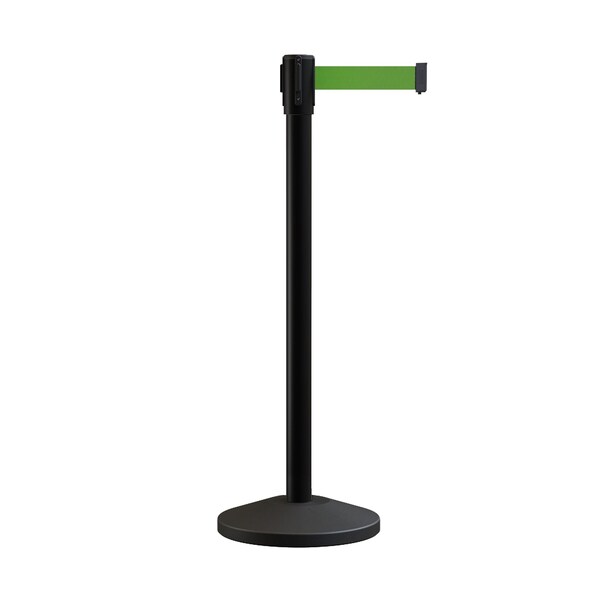 Retractable Belt Barrier Stanchion, 2in Black Post 7.5'Green Belt (Discontinued)
