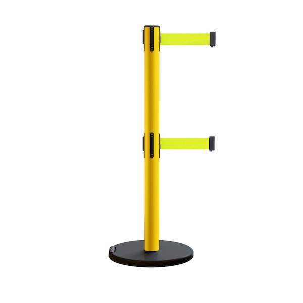 Retractable Belt Dbl Rolling Stanchion 2.5ft Yellow Post 11ft. Fl.Yel