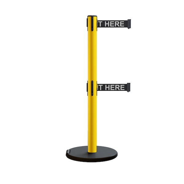 Retractable Belt Dbl Rolling Stanchion, 2.5ft Yellow Post 11ft. Wait