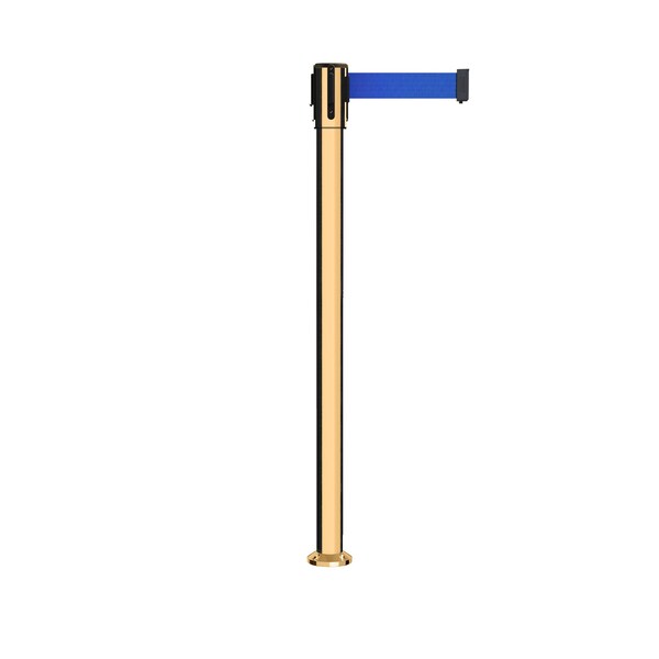 Retractable Belt Fixed Stanchion, 2ft Pol.Brass Post 11ft. Blue Belt (Discontinued)