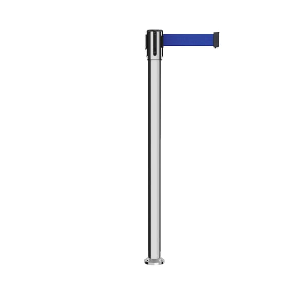 Retractable Belt Fixed Stanchion, 2ft Pol.Steel Post 7.5ft Dk Blu (Discontinued)