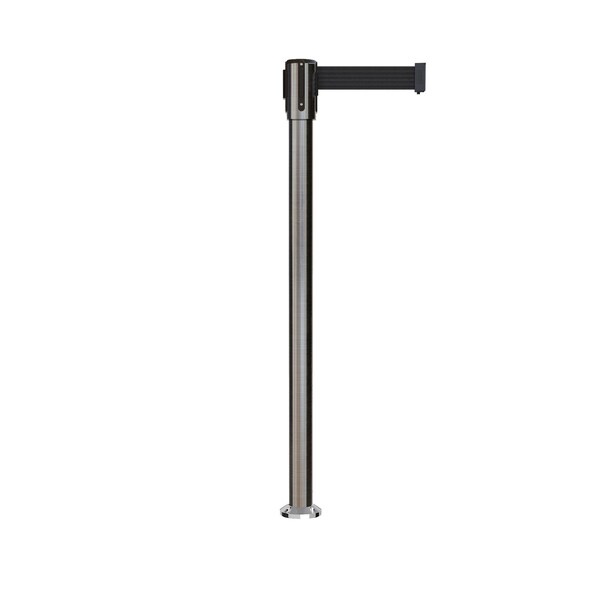 Retractable Belt Fixed Stanchion, 2ft Sat.Steel Post 9ft. Black Belt (Discontinued)