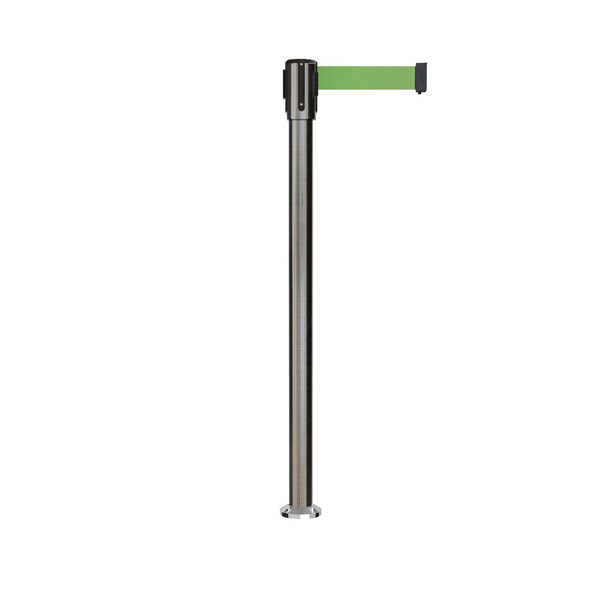 Retractable Belt Fixed Stanchion, 2ft Sat.Steel Post 9ft. Lt Grn Belt (Discontinued)