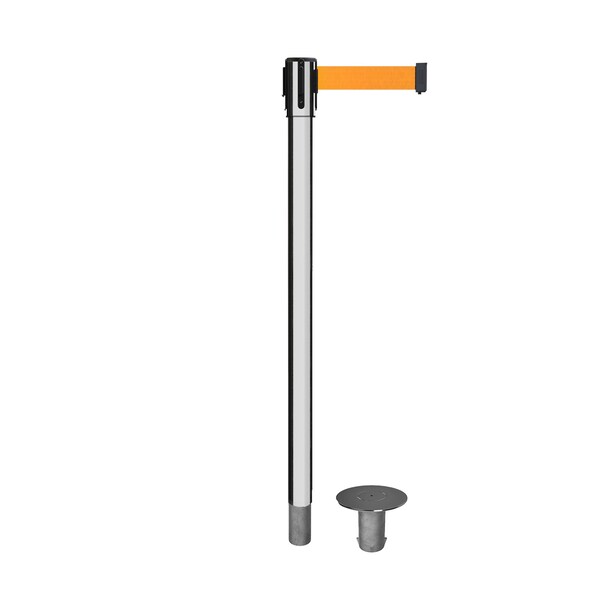 Retractable Belt Removable Stanchion, 2ft Pol.Steel Post 9ft. Fl.Org (Discontinued)