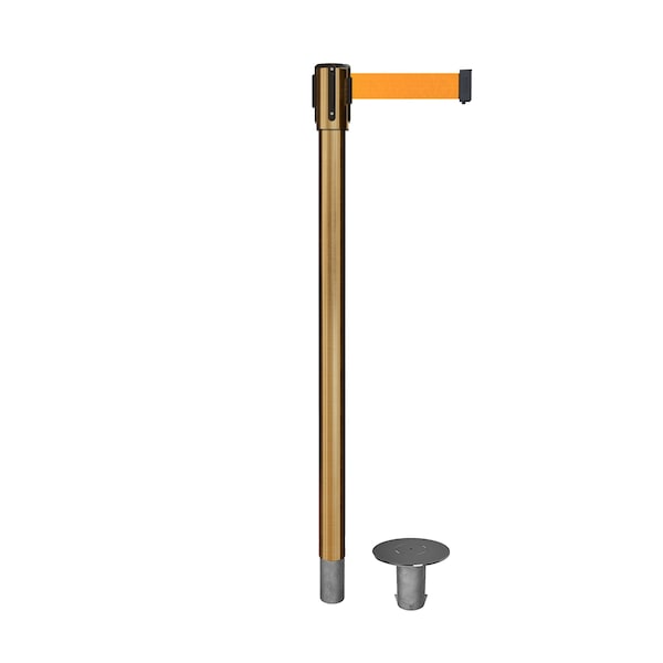 Retractable Belt Removable Stanchion, 2ft Sat.Brass Post 7.5ft Fl.Org (Discontinued)