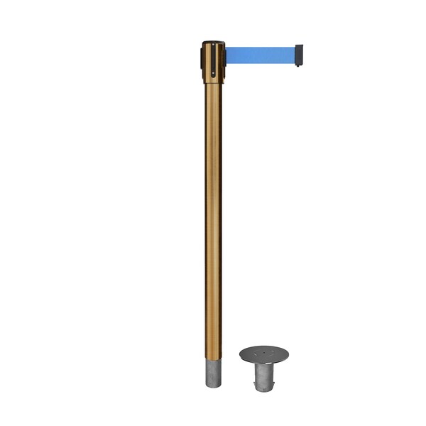 Retractable Belt Removable Stanchion, 2ft Sat.Brass Post 9ft. Lt Blu (Discontinued)