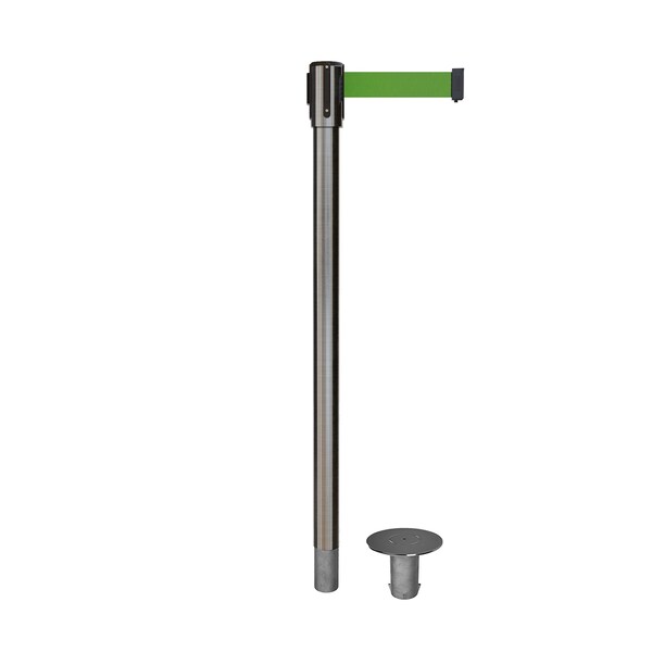 Retractable Belt Removable Stanchion, 2ft Sat.Steel Post 11ft. Green (Discontinued)