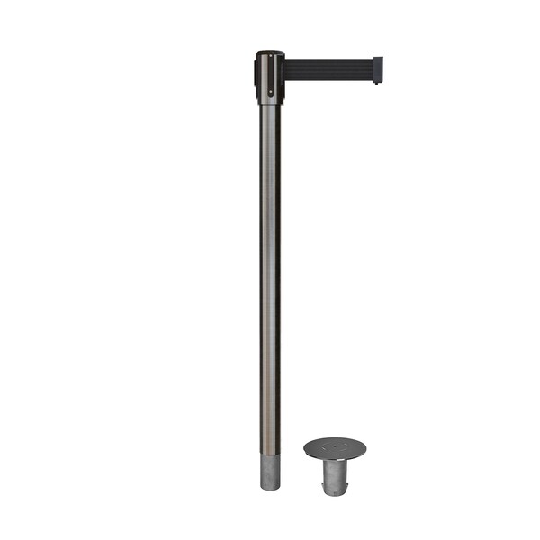 Retractable Belt Removable Stanchion, 2ft Sat.Steel Post 9ft. Black (Discontinued)