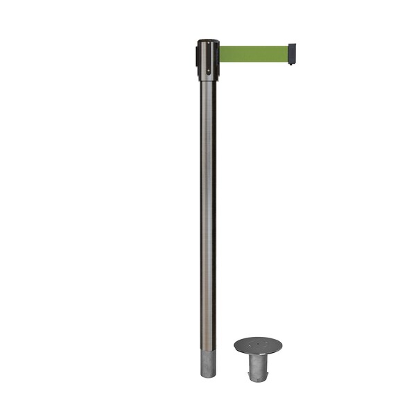 Retractable Belt Removable Stanchion, 2ft Sat.Steel Post 9ft. Olive (Discontinued)
