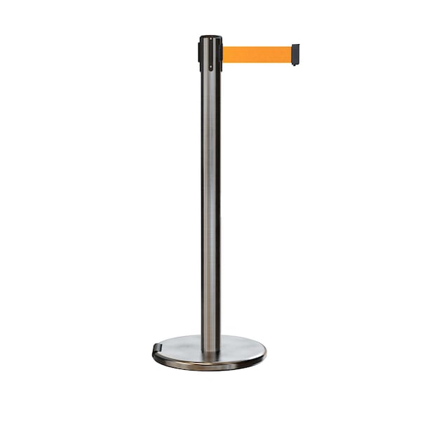 Retractable Belt Rolling Stanchion, 2.5ft Sat.Steel Post 7.5ft Fl.Org
