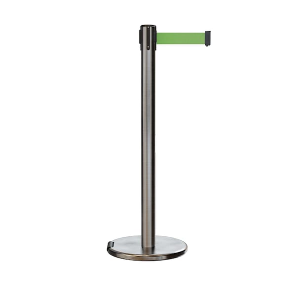 Retractable Belt Rolling Stanchion, 2.5ft Sat.Steel Post 9ft. Lt Grn (Discontinued)