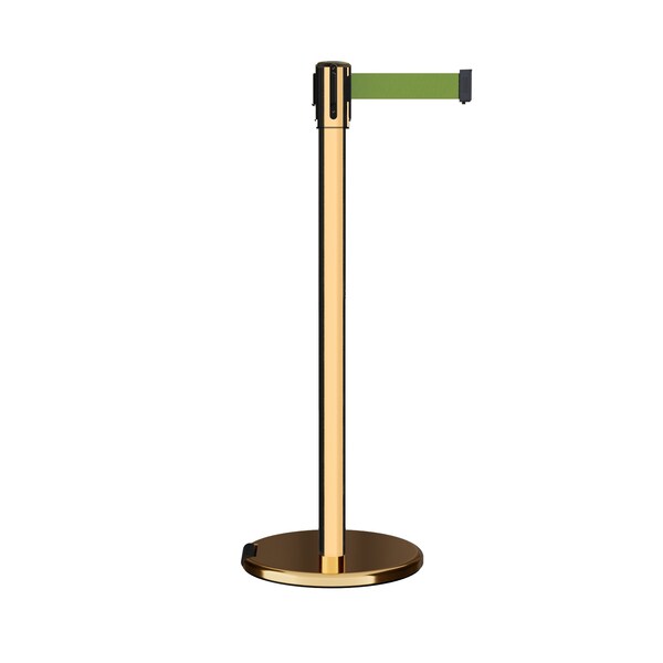 Retractable Belt Rolling Stanchion, 2ft Pol.Brass Post 11ft. Olive (Discontinued)