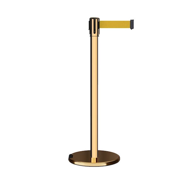 Retractable Belt Rolling Stanchion, 2ft Pol.Brass Post 9ft. Yellow (Discontinued)