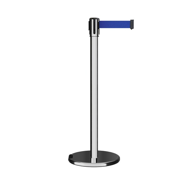 Retractable Belt Rolling Stanchion, 2ft Pol.Steel Post 7.5ft Dk Blu (Discontinued)