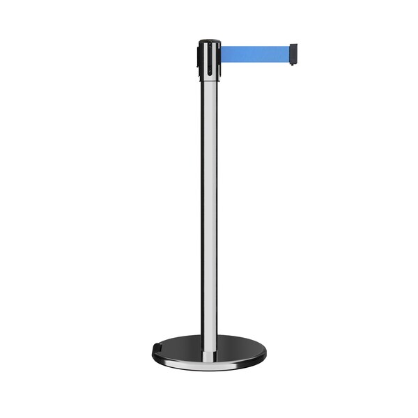 Retractable Belt Rolling Stanchion, 2ft Pol.Steel Post 7.5ft Lt Blu (Discontinued)