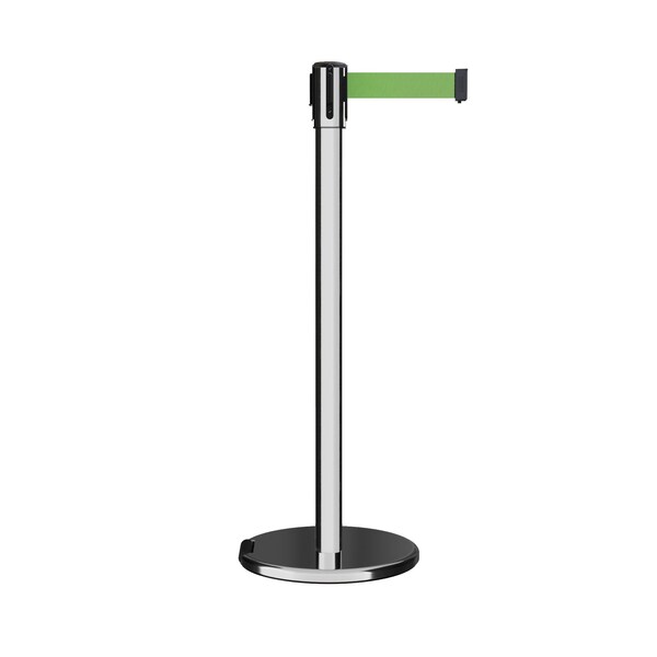 Retractable Belt Rolling Stanchion, 2ft Pol.Steel Post 9ft. Lt Grn (Discontinued)