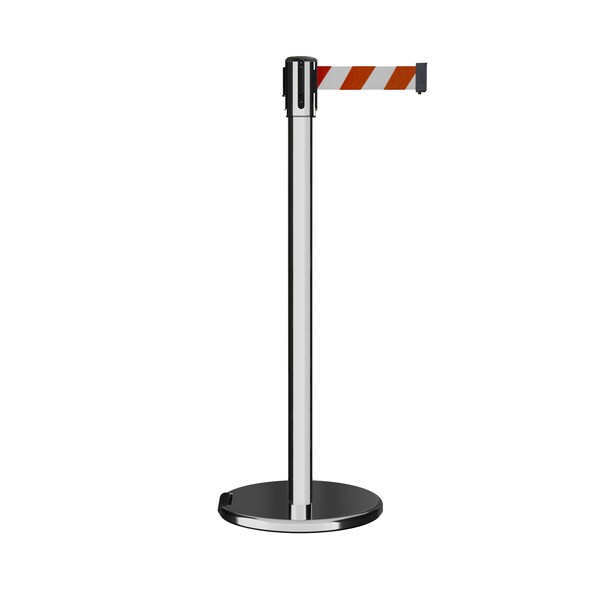 Retractable Belt Rolling Stanchion, 2ft Pol.Steel Post 9ft. Rd/Wh (Discontinued)
