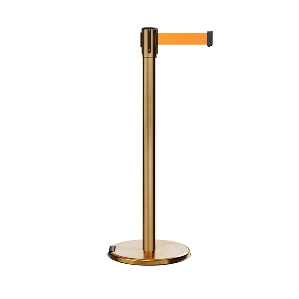Retractable Belt Rolling Stanchion, 2ft Sat.Brass Post 7.5ft Fl.Org (Discontinued)