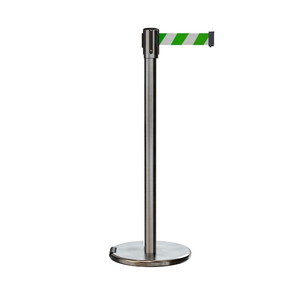 Retractable Belt Rolling Stanchion, 2ft Sat.Steel Post 11ft. Grn/Wh (Discontinued)