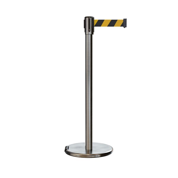 Retractable Belt Rolling Stanchion, 2ft Sat.Steel Post 7.5ft Blk/Ye (Discontinued)