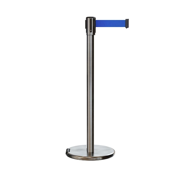 Retractable Belt Rolling Stanchion, 2ft Sat.Steel Post 7.5ft Blue (Discontinued)