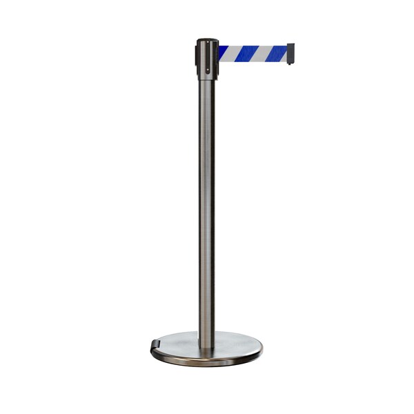 Retractable Belt Rolling Stanchion, 2ft Sat.Steel Post 7.5ft Blu/Wh (Discontinued)