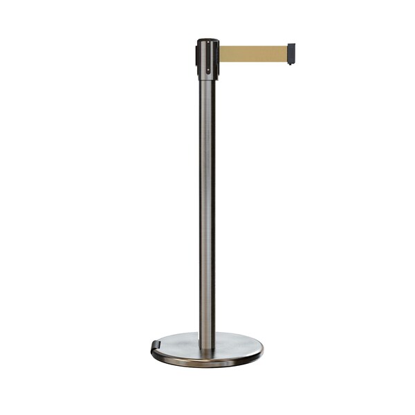 Retractable Belt Rolling Stanchion, 2ft Sat.Steel Post 7.5ft Lt Brwn (Discontinued)