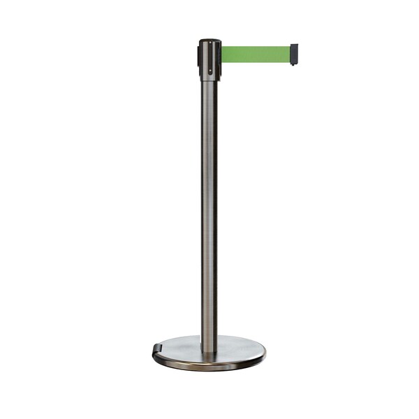 Retractable Belt Rolling Stanchion, 2ft Sat.Steel Post 9ft. Lt Grn (Discontinued)
