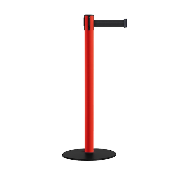 Retractable Belt Stanchion, Low Base, 2.5" Red Post 7.5'Black Belt