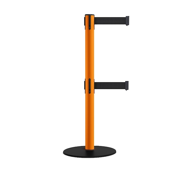 Retractable Dbl Belt 2.5" Orange Post , Low Base, 11' Black Belt