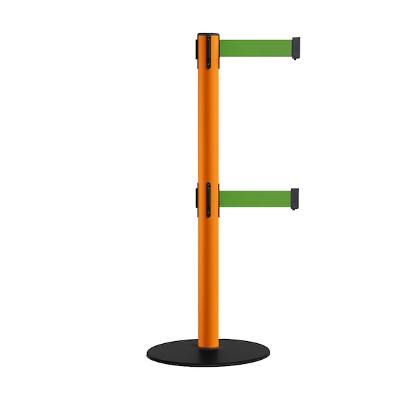 Retractable Dbl Belt 2.5" Orange Post , Low Base, 11' Green Belt