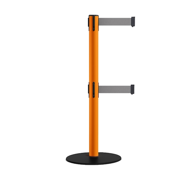 Retractable Dbl Belt 2.5" Orange Post , Low Base, 7.5'Lt Gry Belt