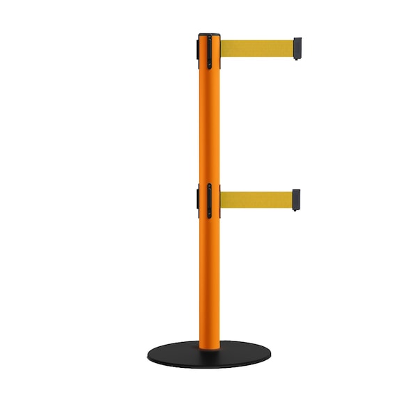 Retractable Dbl Belt 2.5" Orange Post , Low Base, 7.5'YW Belt