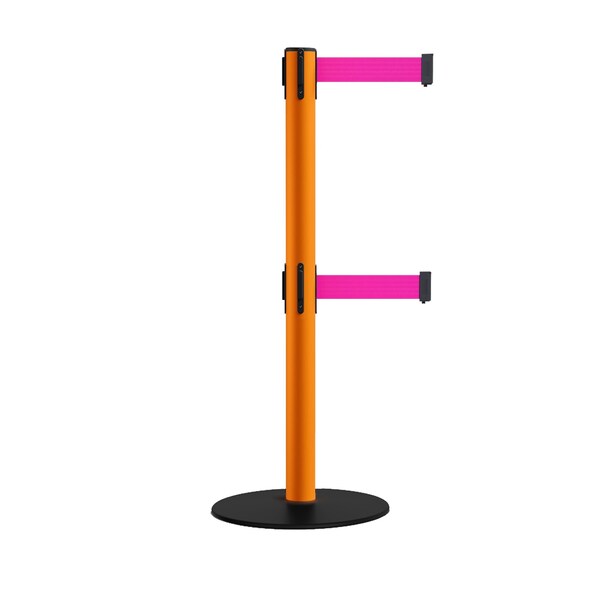 Retractable Dbl Belt 2.5" Orange Post , Low Base, 9' Fl.Pnk Belt