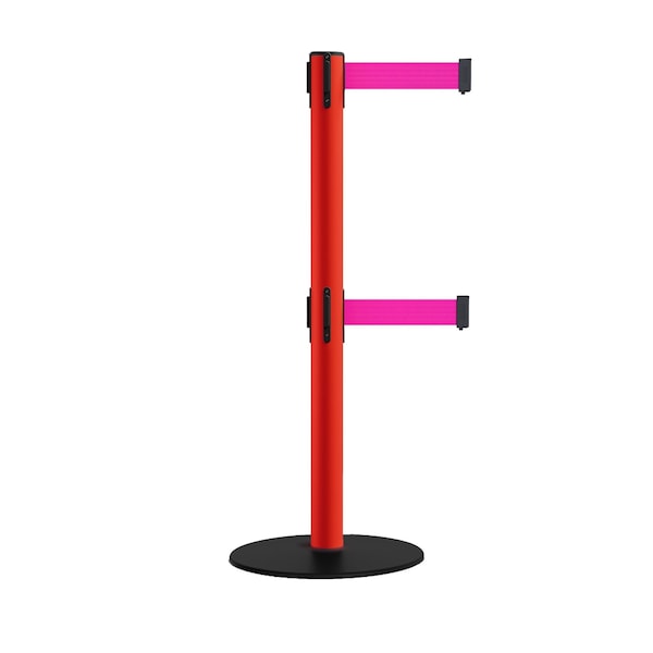 Retractable Dbl Belt 2.5" Red Post , Low Base, 9' Fl.Pnk Belt